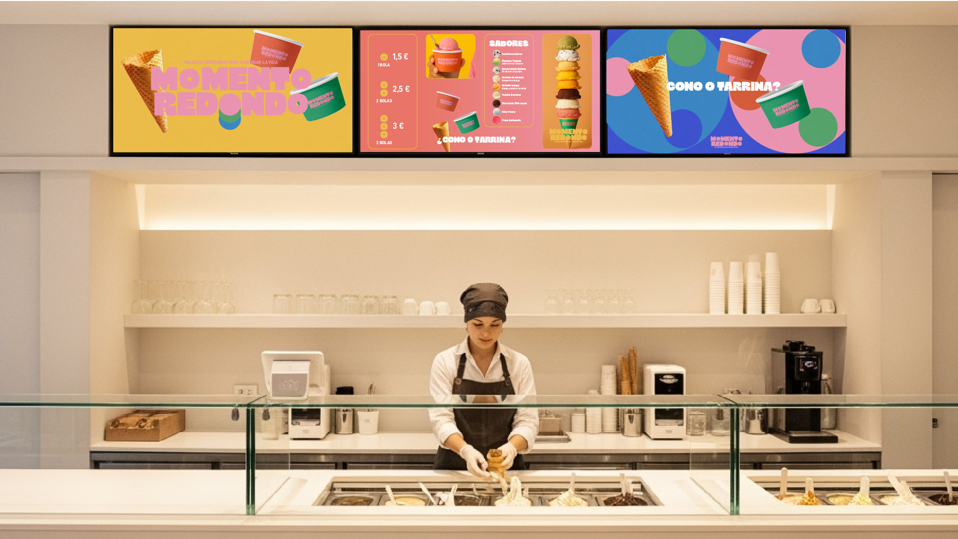 ¿Qué es un Momento Redondo? Pues eso… ese instante en el que te comes un helado y, por un momento, todo se para. ¿Gran momento no? En el brief aparecieron palabras como ligero, artesano y con un puntito juguetón. Y eso es lo que le movimiento quiere transmitir: sabor a instante que se te queda.