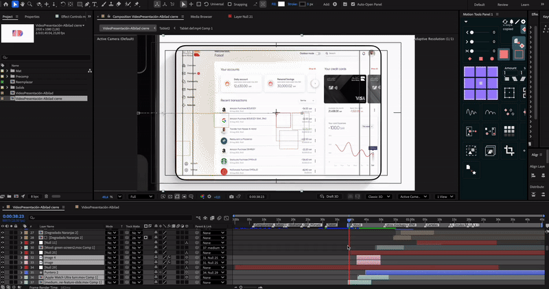 Para mostrar el producto en contexto, integramos la solución digital creada por Eunoia digital en dispositivos 3D y les dimos movimiento. También animamos cartelería y recreamos en mockup un escenario del banco, para que el cliente final pudiera visualizar la propuesta tal y como la viviría en el mundo real.